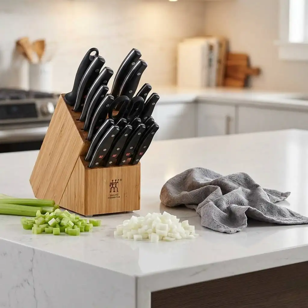 The Henckels International Definition 14-Piece Set is a calculated compromise. It trades the longevity and soul of a forged blade for the immediate convenience of a constantly sharp edge.